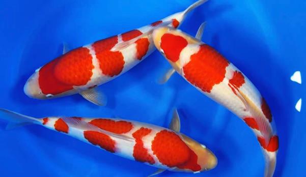 Kohaku: Has a silvery-white base color with inlaid red patterns. The red patches are evenly distributed and have clear edges.